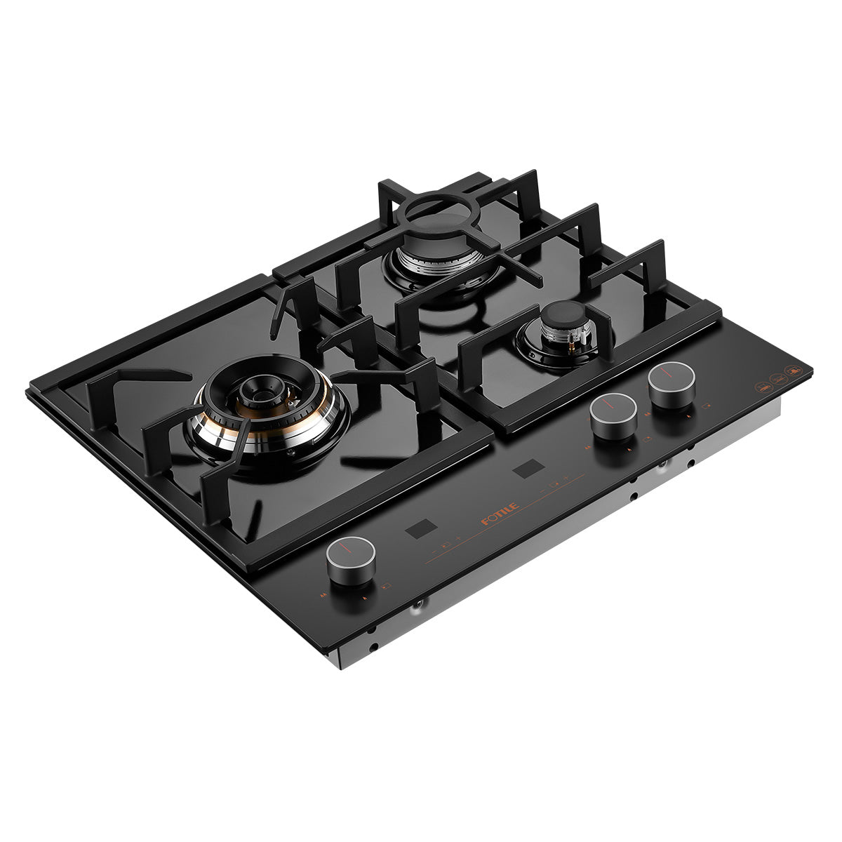 GLG60305-Y 600mm 3 Burner Black Glass Cooktoop Matte Grey