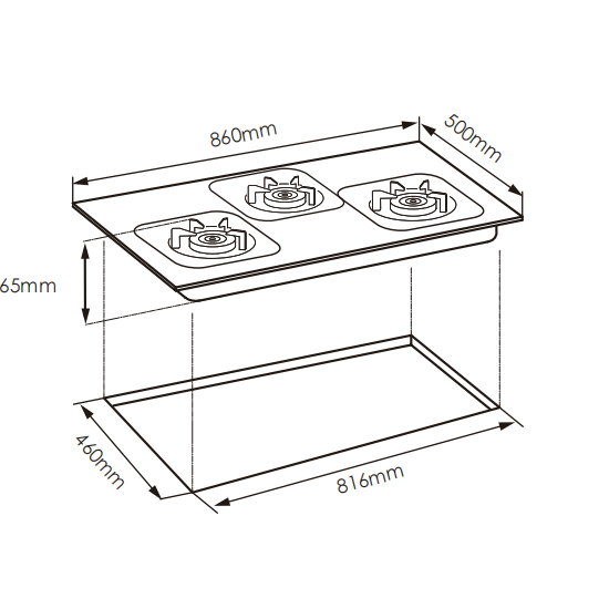GLG86322S 860mm 3 Burner Black Glass Cooktop
