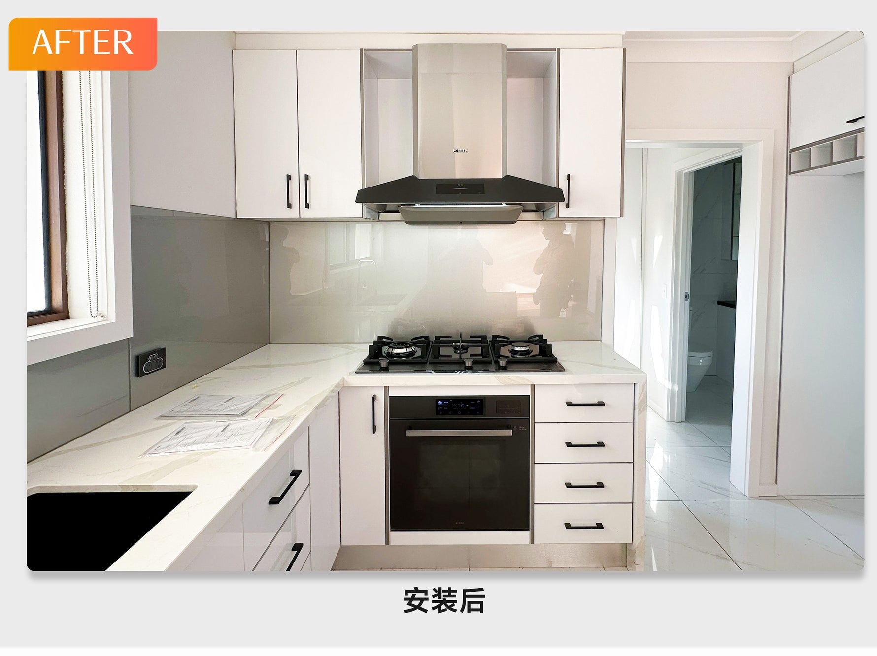 The innovative addition of black porcelain film and aluminum and silver-white materials and the use of three-color matching make it more atmospheric.