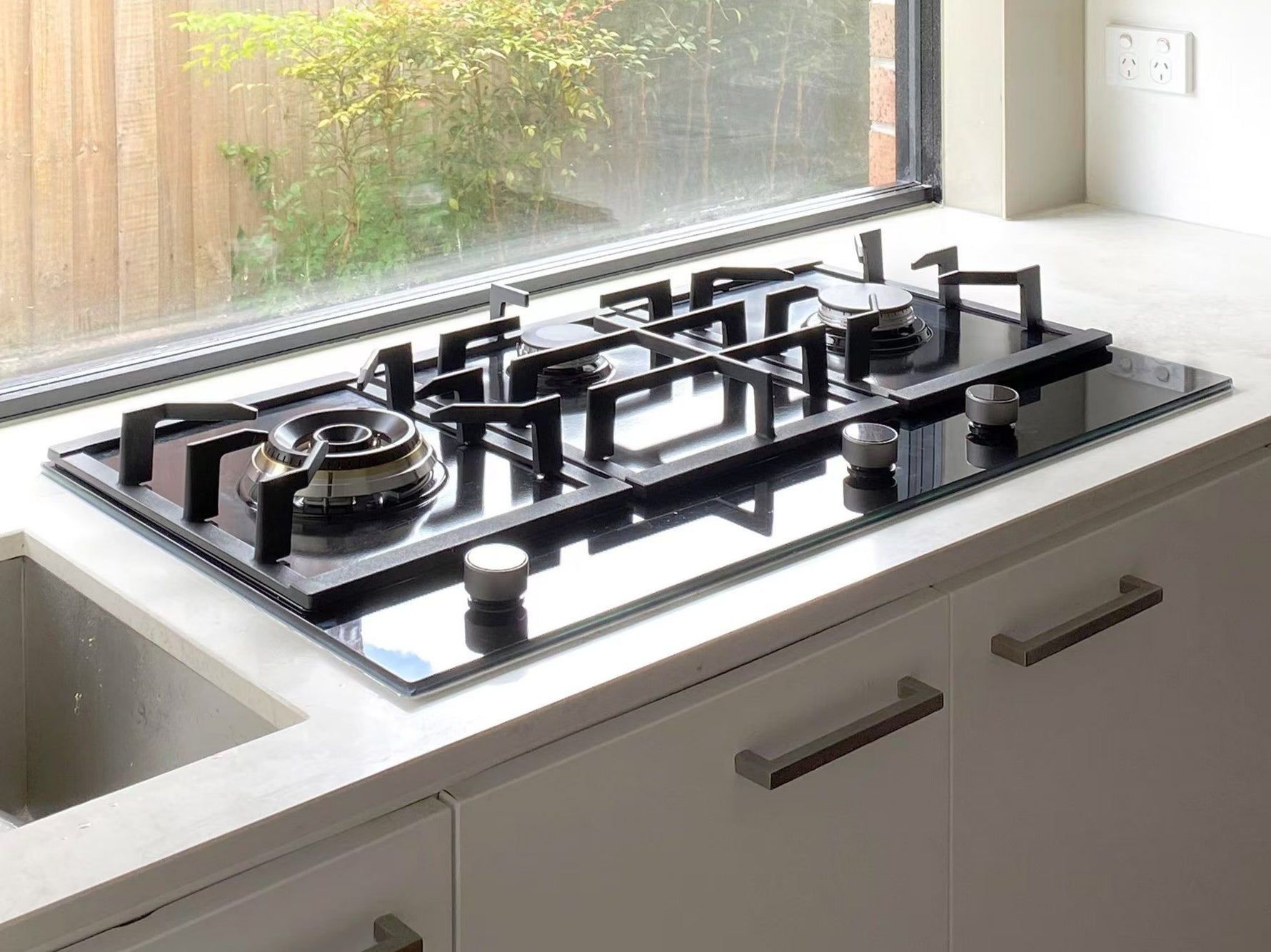 GLG90305-Y 600mm 3 Burner Black Glass Cooktoop Matte Grey